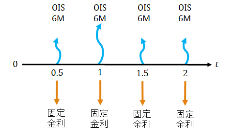 固定金利支払側では、固定金利による利息を時点