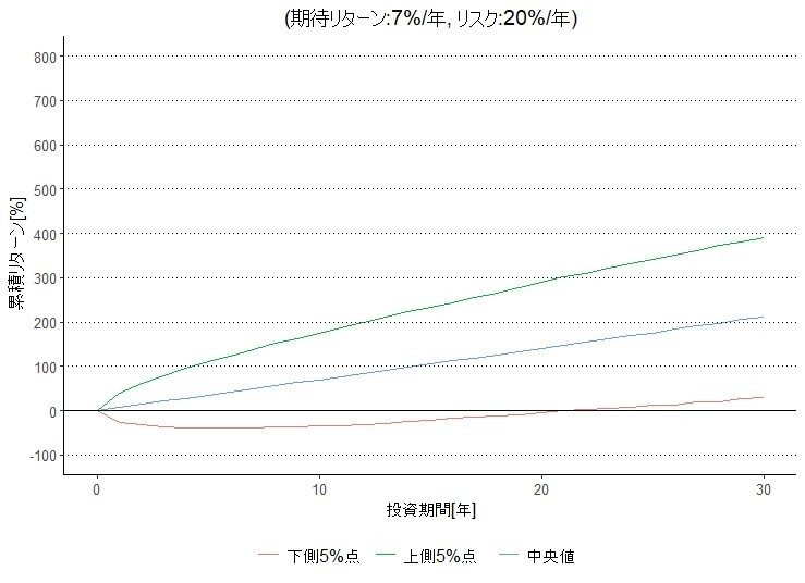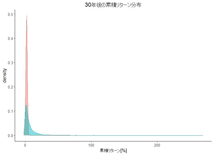 年金資産であれば投資期間は超長期と考えられる。これで問題になるのは、長期投資の累積リターンは複利(累積)になるために正規分布には従うとは限らないことである。